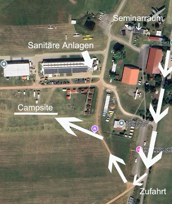 Ballenstedt ist mit dem Auto 3km vom Flugplatz entfernt. Dort gibt es mehrere Supermärkte und eine Tankstelle.