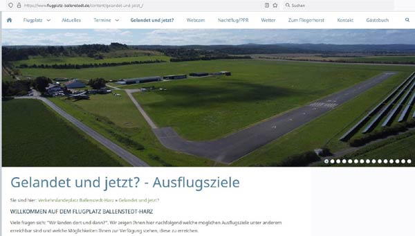 Der Flugplatz hat auf seiner Internetseite einige schöne Ausflugsziele notiert, es lohnt sich, diesem Link zu folgen, um sich zu informieren.