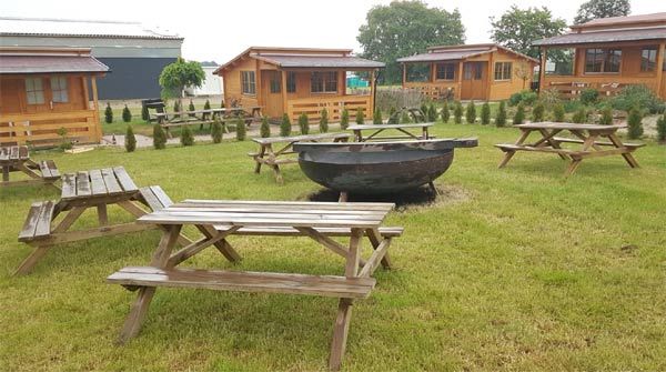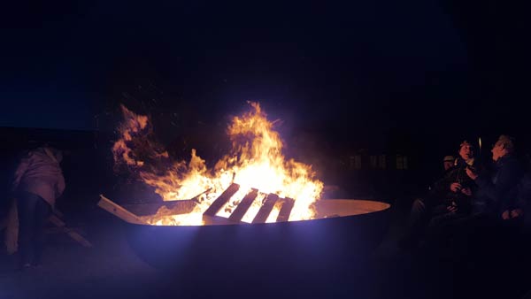 Wir erhalten die große Feuerschale, die zentral aufgestellt wird und Paletten zum Verbrennen. Es sind keine eigenen kleinen Lagerfeuererlaubt.