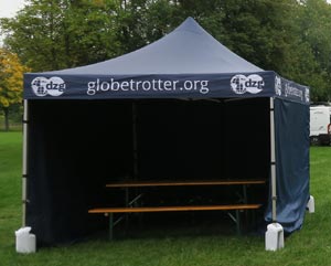 Am Zelt gibt es alles rund um die Globetrotter und Reisen.